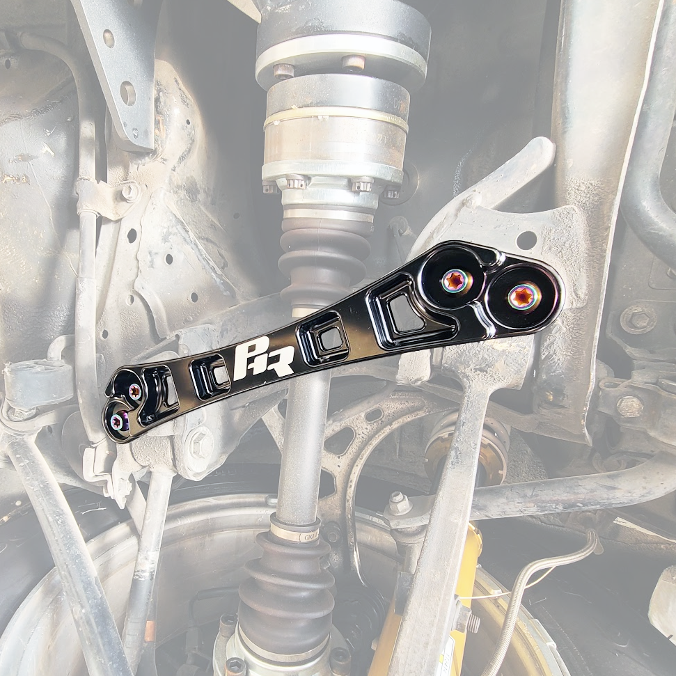 The PHR Billet Subframe Reinforcement Brace has the performance car in mind. Never mind the thin folded piece of steel bolted to your subframe that easily buckle and bend. With the PHR Subframe Reinforcement Brace, you can be certain that you rear subframe will maintain its shape and rigidity should you push you car to its limits on the track.